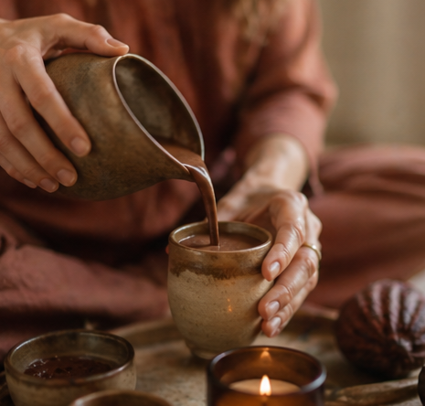 We openen de ruimte met ceremoniële cacao om het hart te verzachten en te openen. Van daaruit begeleiden we je in een innerlijke reis met elementen als verstilling, ademwerk, geleide meditatie, sound healing en visualisaties.